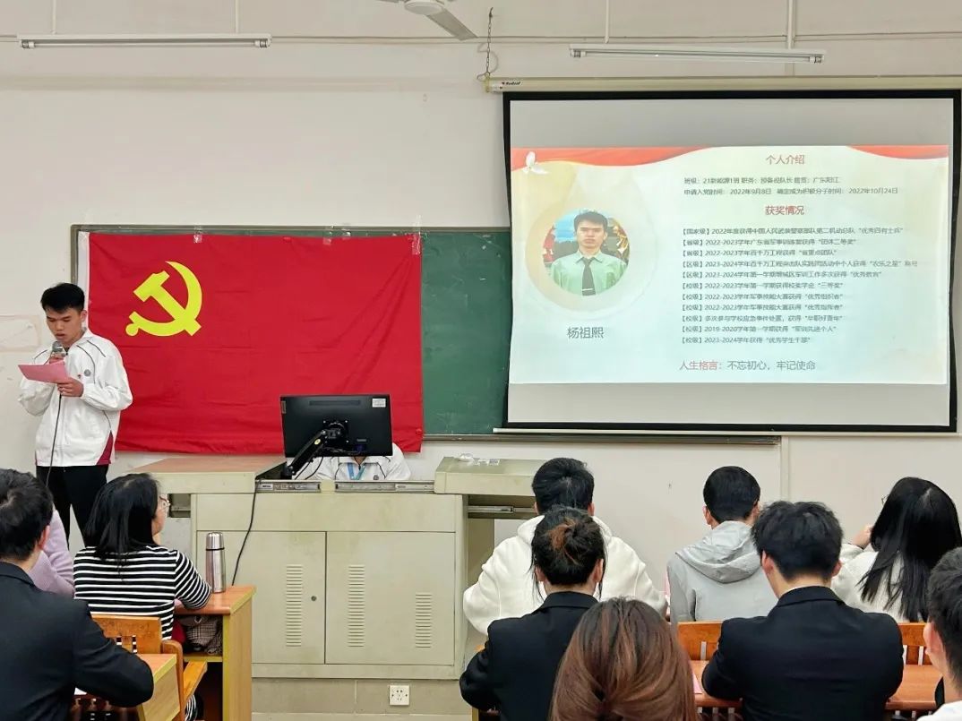杨祖熙等13名发展对象依次上台向党组织汇报对党的认识及考察期间个人在学习、工作、生活及思想等方面的表现,并针对现存不足作出自我批评,随后正式向党支部提出转为预备党员申请,表明加入中国共产党的决心。