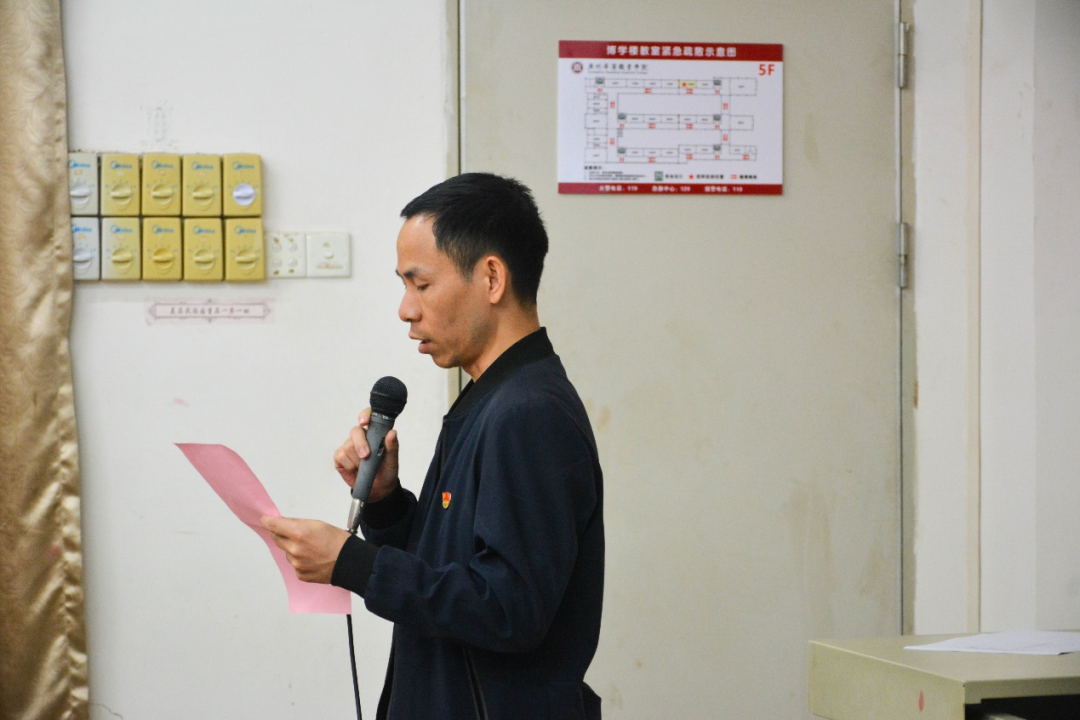 支部委员戴乐毅代表支部委员会宣读对全体发展对象的政治审查报告,报告显示全体发展对象思想品质良好,入党动机端正、入党材料、内容产全、手续完善、同意履行入党手续。
