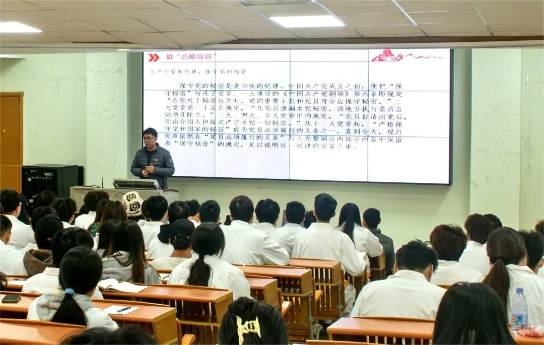 本次会议中,姚书记以学党章党规,做合格党员为主题,为在场同学细致讲解了党章党规的内容和做一名合格党员的要求。他指出,学习党章党规是每个共产党员应尽的义务,我们要紧跟时代要求,把党章与中华优秀传统文化相结合,把党章融会贯通,做到学而懂、学而信、学而用,时刻以党章为行动准则,在新征程的道路上披荆斩棘。