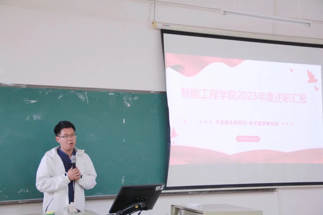 会上,教师党支部书记吴刚、学生第一党支部书记魏文香以及学生第二党支部书记陈心儿按照述职要求,分别从履职情况、党史学习教育、主题教育学习情况、学院中心工作,党支部建设情况和成效、思想政治工作情况、支部建设存在问题和下一步工作思路和举措等多个方面进行了详细的汇报。他们总结了全年的工作成果,深入剖析了存在的问题和不足,并提出了2024年的工作思路和具体措施。
