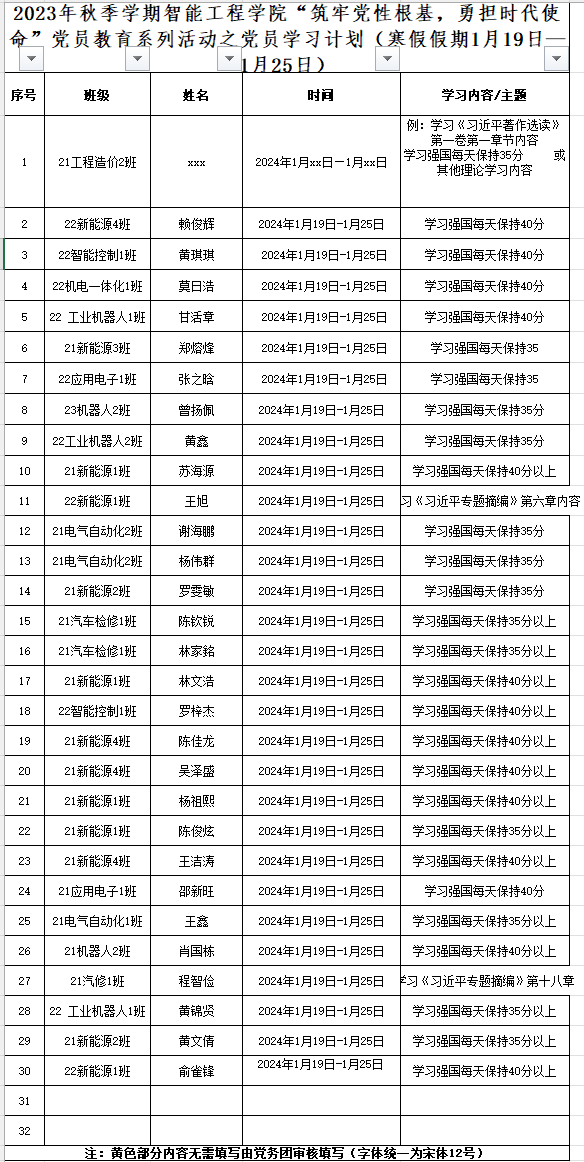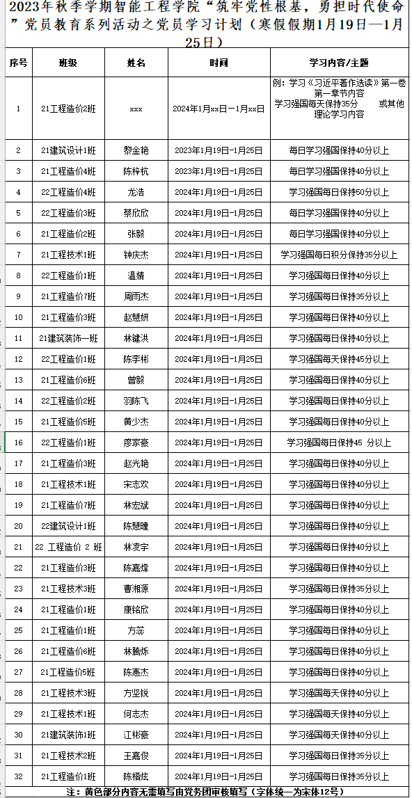 为深化党员的自我教育管理模式,切实提升党员自我教育管理实效,best365官网登录入口党总支针对现阶段党员教育管理不足现状,积极探索,组织开展党员自我教育学习活动,锚定学习目标,认真贯彻落实,狠抓推进整改,抓好奖励惩罚。现将寒假假期(1月19日——1月25日)党员学习计划及检查结果公布如下。