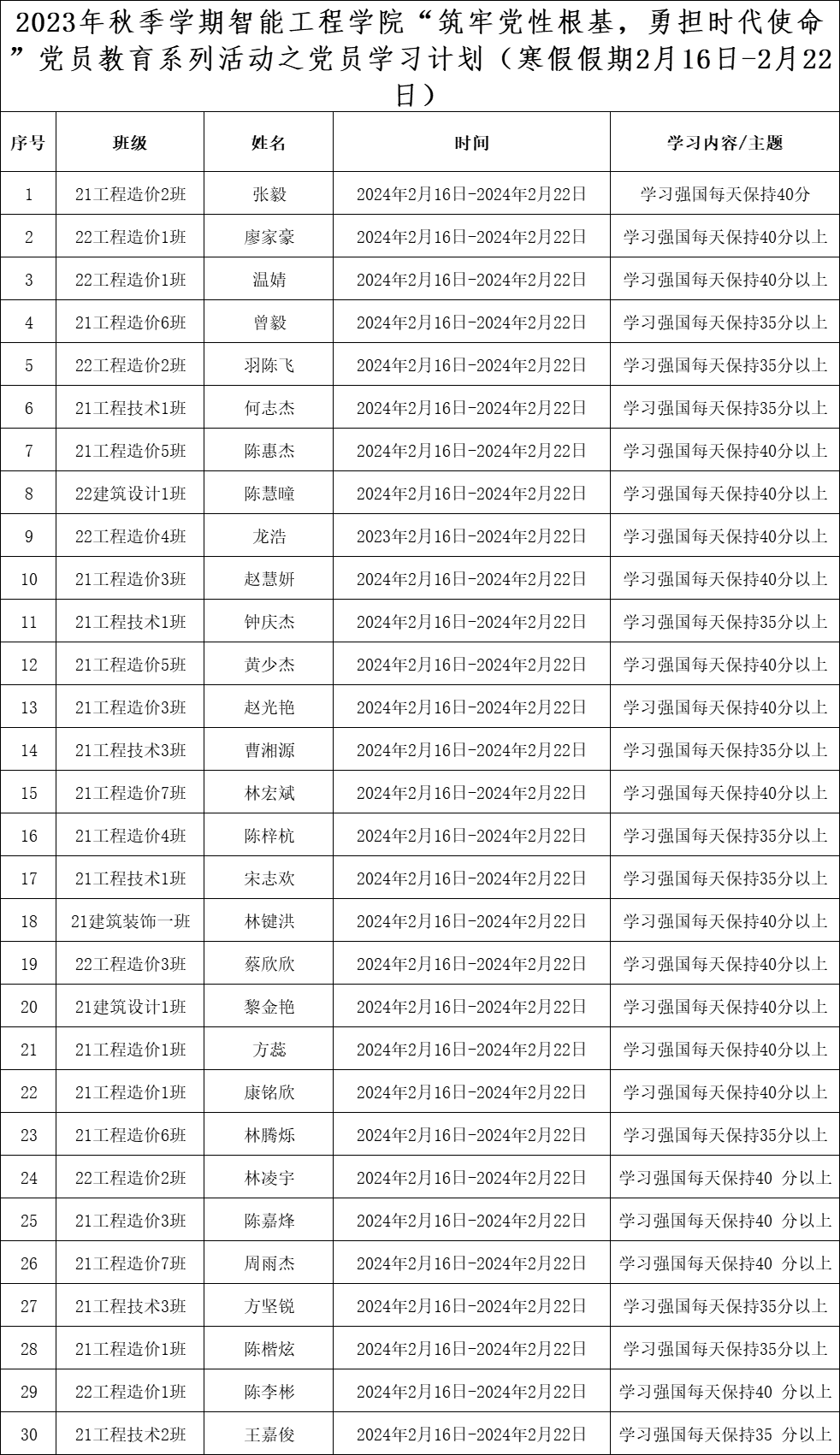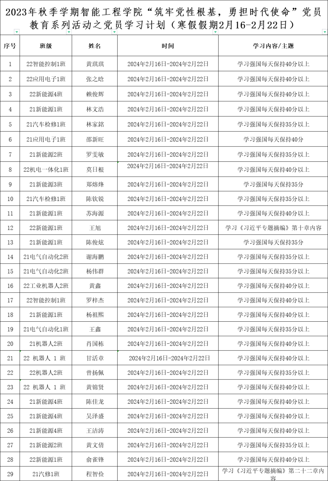 寒假假期学生党员学习计划表
