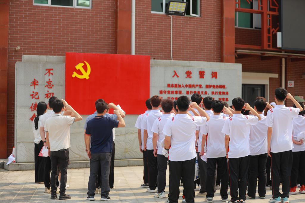 来到大埔围村爱国主义教育基地,在入党誓词的石碑前,全体师生党员怀着崇敬的心情面对党旗与入党誓词,举起右拳,庄严宣誓,重温入党的神圣时刻。