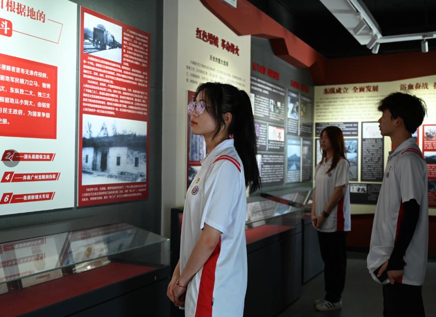 随后,在大埔围抗战陈列馆,全体师生党员认真观看了珍贵的历史遗物和图片影像资料。一幅幅艰苦奋斗的画面,一幕幕感人的革命场景,深深地感染着在场的每一位党员。