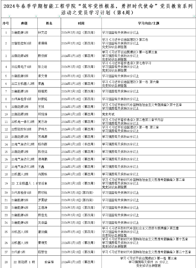 为深化党员的自我教育管理模式,切实提升党员自我教育管理实效,best365官网登录入口党总支针对现阶段党员教育管理不足现状,积极探索,组织开展党员自我教育学习活动,锚定学习目标,认真贯彻落实,狠抓推进整改,抓好奖励惩罚。现将第二周党员学习计划及检查结果公布如下。
