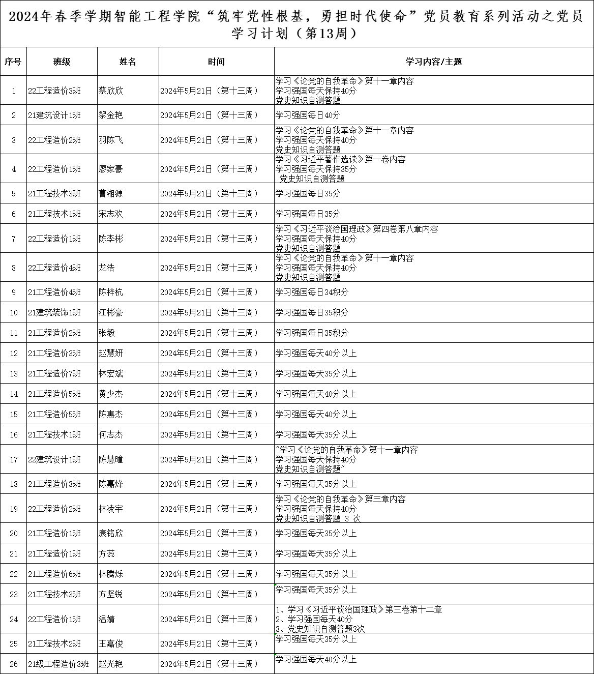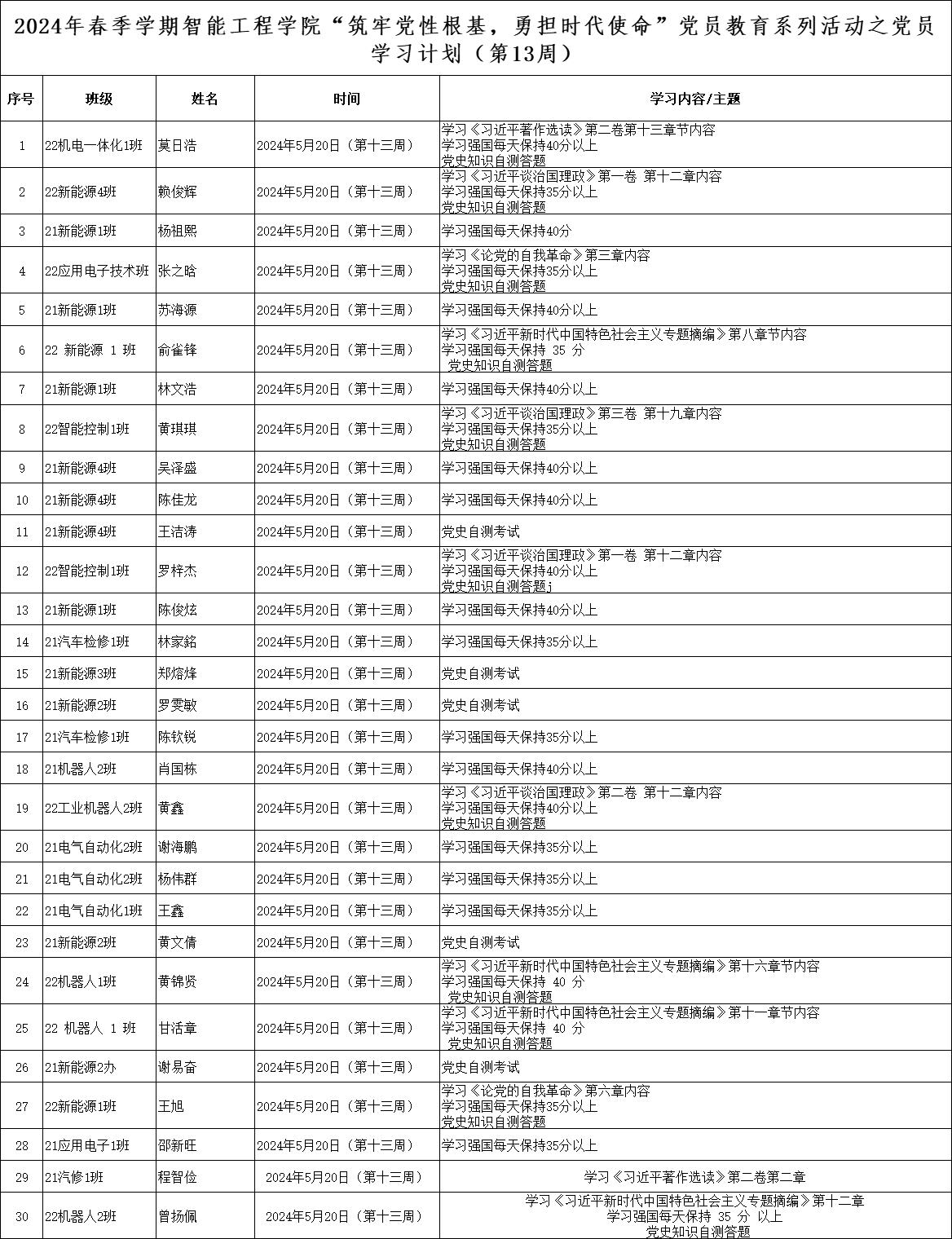 为深化党员的自我教育管理模式,切实提升党员自我教育管理实效,best365官网登录入口党总支针对现阶段党员教育管理不足现状,积极探索,组织开展党员自我教育学习活动,锚定学习目标,认真贯彻落实,狠抓推进整改,抓好奖励惩罚。现将第十三周党员学习计划及检查结果公布如下。