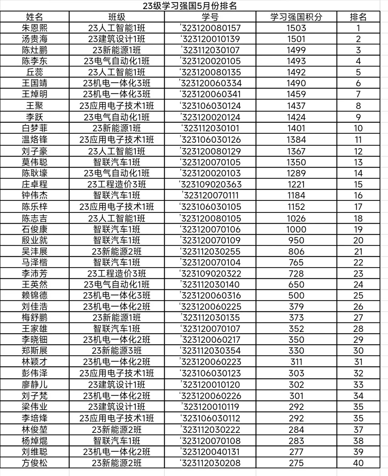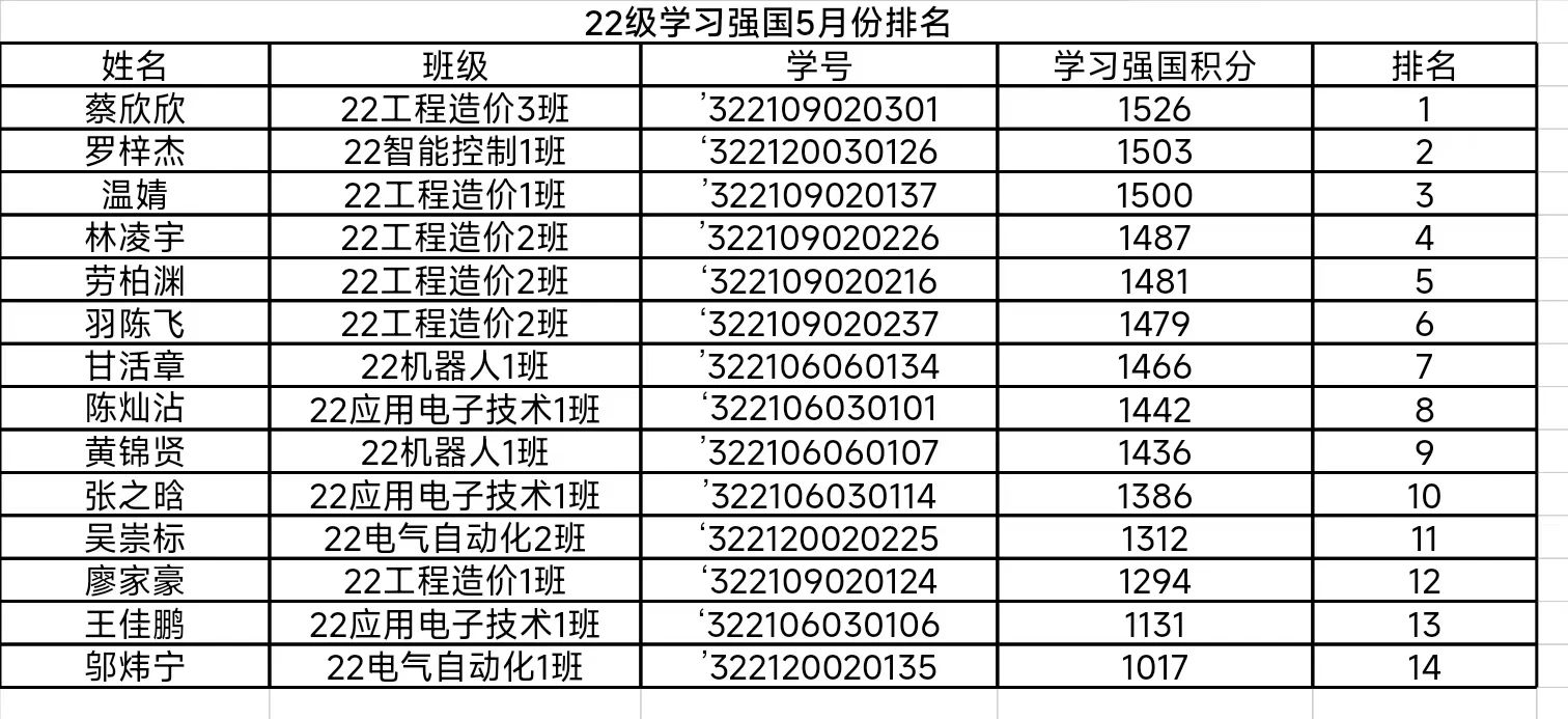 为进一步加大“学习强国”学习平台的宣传推广力度,充分发挥平台的引领作用,深入学习贯彻党的二十大精神,营造真学、深学、细学的学习氛围,best365官网登录入口以“学习强国”积分情况为依据,每月持续推出学习强国积分排行榜,对学习积分优秀的同学进行亮晒,推动“学习强国”在我院走深、走实、走心,掀起“学思践悟强担当,勇毅前行建新功”的热潮。