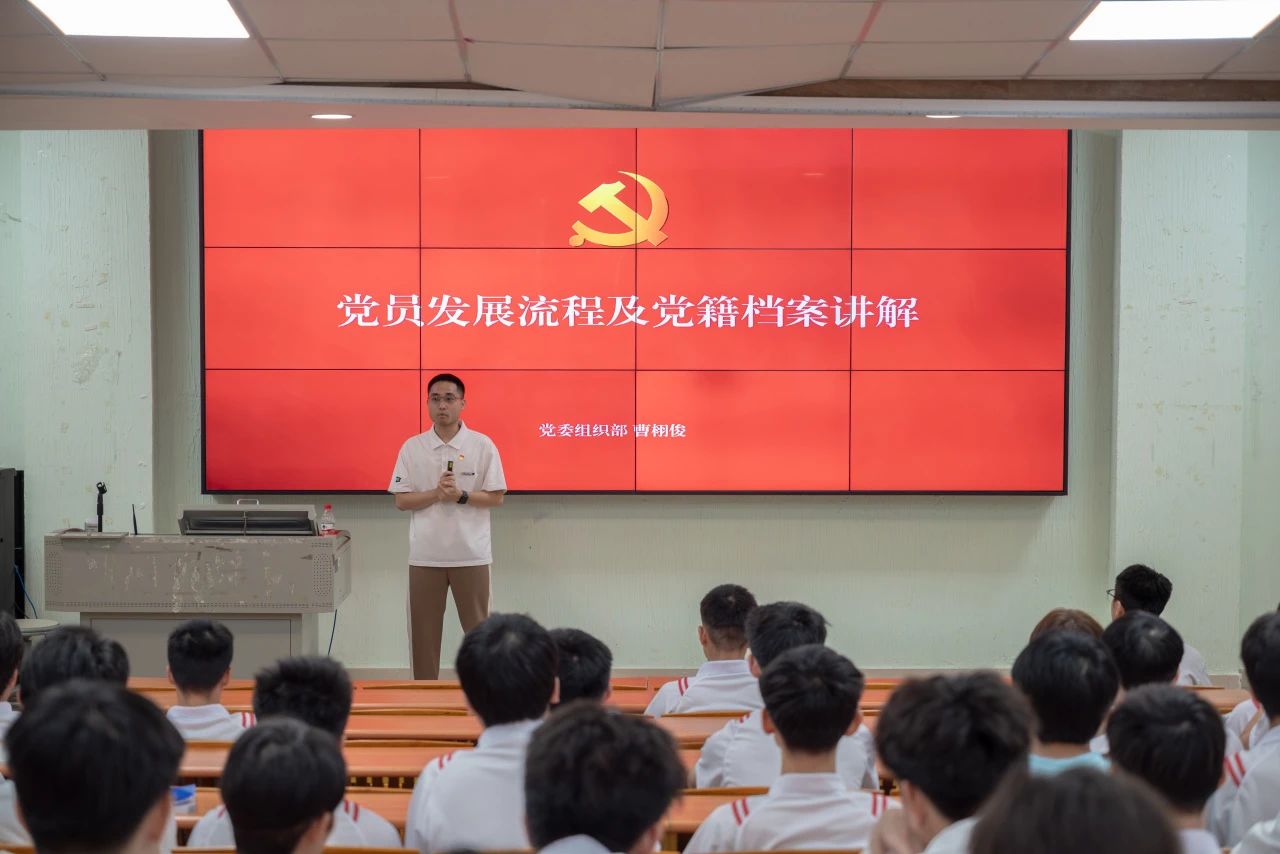 党委办公室组织部科长曹栩俊以《党员发展流程及党籍档案》为题开启培训班线下第三讲。曹老师为学员们讲述了入党的基础条件及入党的五大步骤,在分析党籍档案的组成时结合具体案例分析,内容生动形象,浅显易懂。他在讲解后与学员们互动交流,深入了解学员们的入党动机,并提出要求,强调学员们要端正入党动机,时刻秉持坚定的共产主义信念以及全心全意为人民服务的意识,做一名合格的入党积极分子,争取早日成为一名光荣的共产党员。
