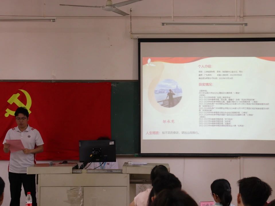 陆俊杰等十位发展对象依次上台,以客观、全面的态度向党组织汇报了考察期间在学习、工作、生活及思想等各个方面的具体表现。他们郑重地向党支部提出转为预备党员的申请,充分展现了自己坚定的入党意志和决心。在汇报中,他们不仅肯定了自己在考察期间的进步与成长,也坦诚地指出了自身存在的不足和需要改进的地方。同时,他们明确表示,今后将努力改正自身缺点,不断提升自我,积极向身边的优秀共产党员学习,争取早日成为一名合格的共产党员。