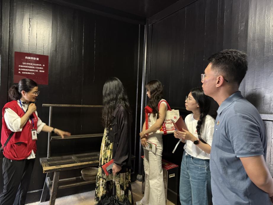 踏入韶山,首站便是毛泽东故居,馆内陈列着的旧物都承载着岁月的痕迹,仿佛将党员们拉回到毛泽东同志挑灯夜读,探求救国之路的那段时光。不远处的毛泽东铜像广场上,毛主席眼神深邃地望着他所深爱的土地和人民,每个人都怀着崇敬的心情走向毛主席,或献上花篮,或深鞠一躬,以表达对毛主席的缅怀之情。随后踏入毛氏宗祠,浓厚的文化气息扑鼻而来,党员们深切感受到优良家风对一代伟人的成长的重要作用。