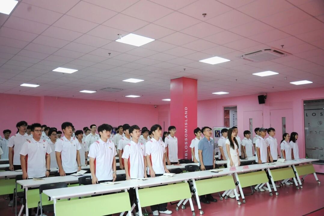 全体人员肃立,齐声高唱国歌,大会在庄严的国歌声中拉开了帷幕。