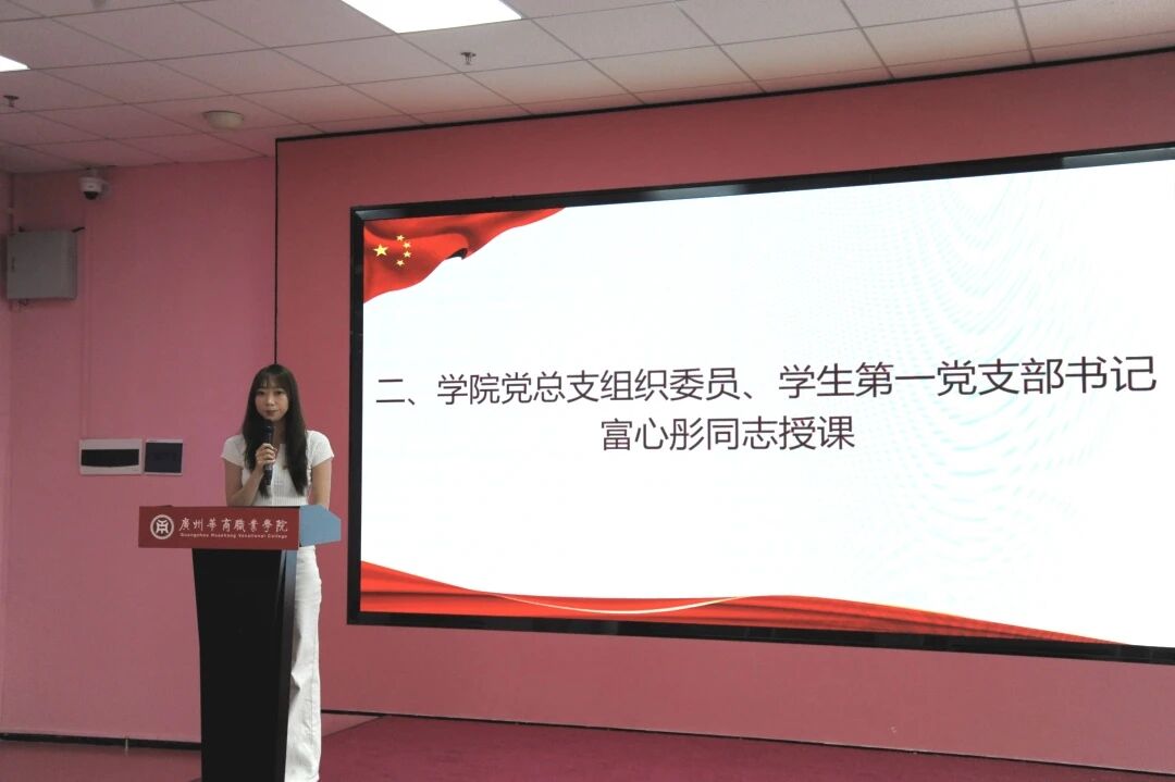 首先,学院党总支组织委员、学生第一党支部书记富心彤同志以《中国共产党的光辉历史》为主题进行授课。她以“党的百年奋斗历程”为主线,系统梳理了从新民主主义革命时期的艰辛探索、社会主义建设时期的自力更生,到改革开放时期的开拓创新及中国特色社会主义新时代的伟大飞跃这一历史脉络,深入解读党在不同阶段的使命任务、奋斗足迹与辉煌成就。授课过程中,她强调,党史是党员坚定理想信念的“精神源泉”,也是提升履职能力的“必修课”,全体党员要从党的百年征程中感悟初心使命、汲取奋进力量,始终以党员标准严格要求自己。
