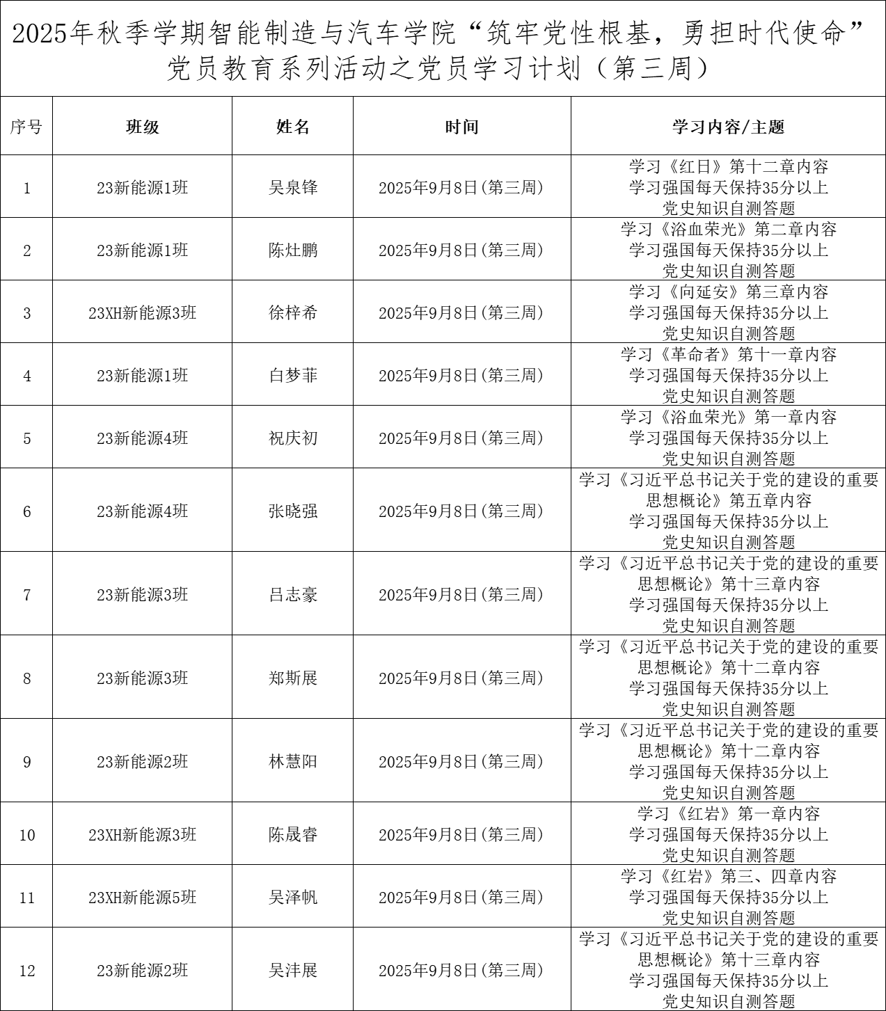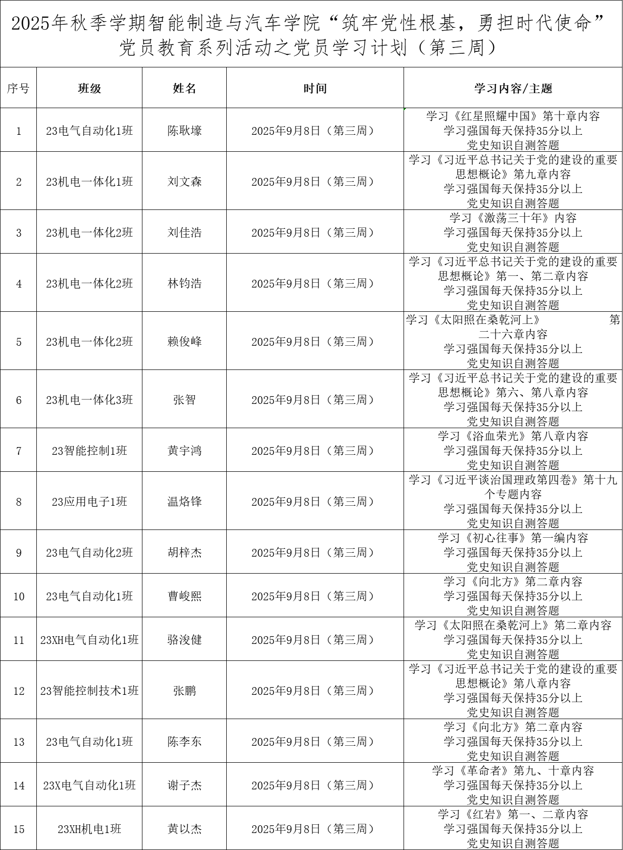 第三周学生党员学习计划表