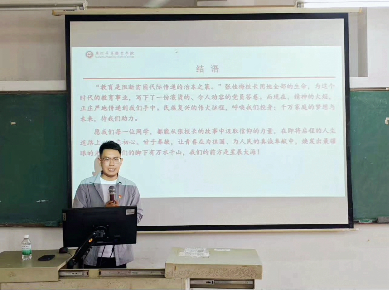 首先,学院党总支组织委员、学生第一党支部书记富心彤同志以“学时代楷模,担初心使命”为主题开展授课。以张桂梅同志以“燃灯”精神扎根一线、无私奉献的事迹为切入点,强调党员们要从“燃灯”精神中汲取奋进力量,始终牢记党员身份,把对党忠诚融入一言一行,以坚定的理想信念筑牢思想根基。要用实际行动传递温暖、凝聚力量,以昂扬姿态践行新时代党员的使命与担当,为学院发展与行业进步贡献青春力量。